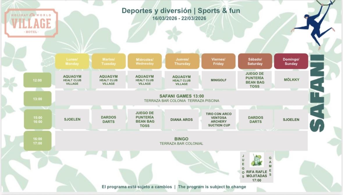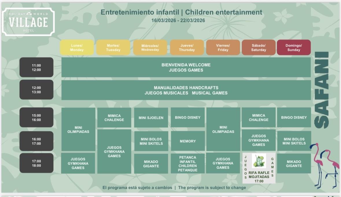Here is the updated and detailed animation program for Village Hotel customers.